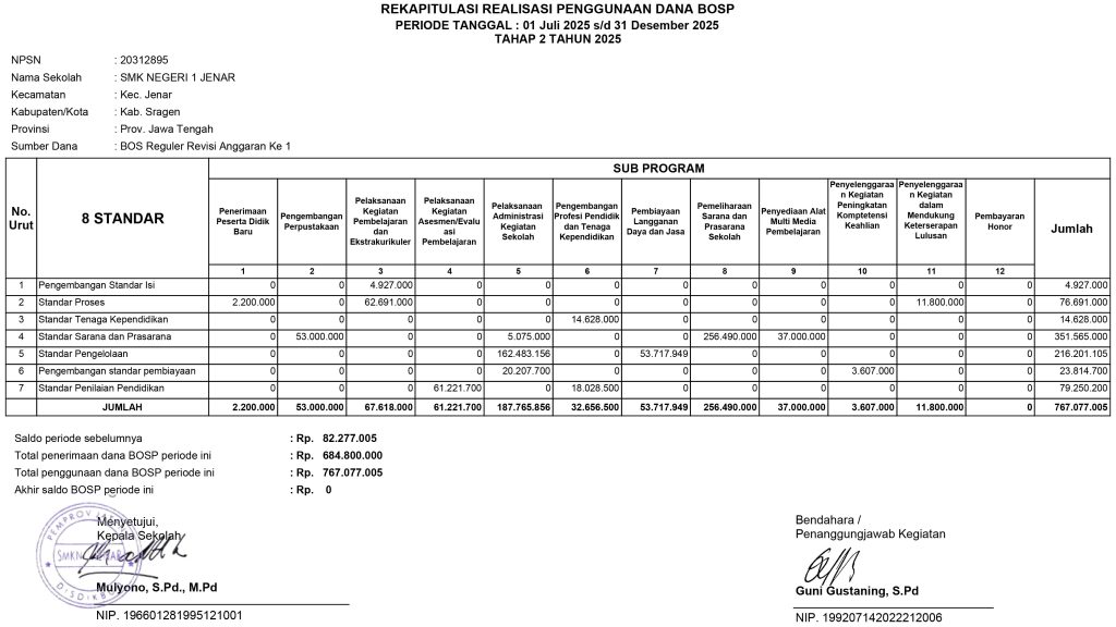 Keberhasilan ini tidak lepas dari bimbingan intensif para guru produktif di SMK Negeri 1 Jenar. Di bawah komando Ibu Lilik Puji Handayani, S.Pd., selaku Kepala Program Busana, tim guru pendamping terus memotivasi untuk berinovasi dan berani menampilkan karya di luar lingkungan sekolah.
